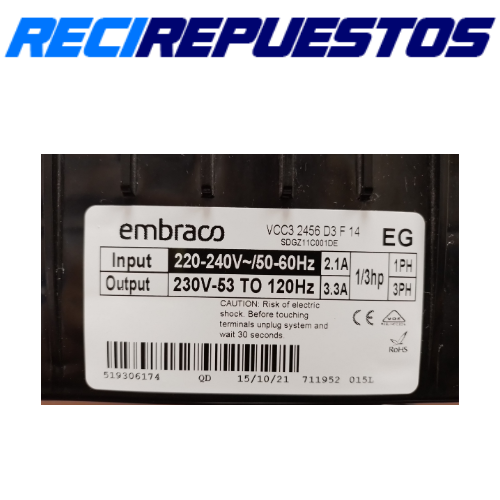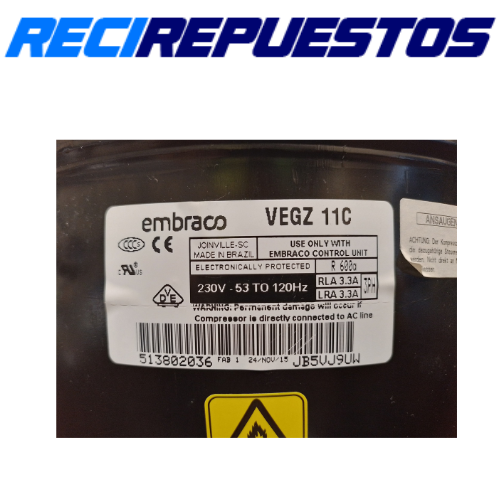 Compresor Inverter Embraco VEGZ 11C